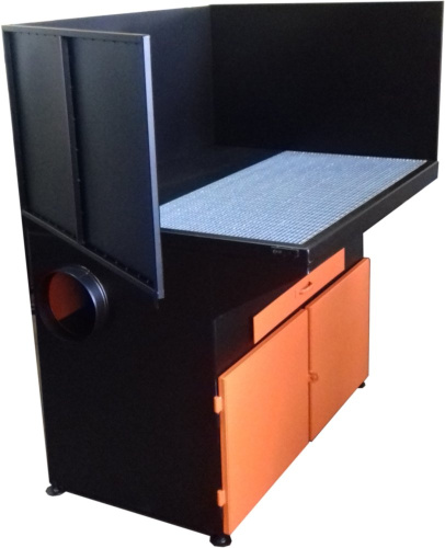 Съемный защитный экран,закрывающий столешницу с 3-х сторон, позволяет эффективно улавливать абразивную пыль пыль и предотвращает ее выброс в помещение.